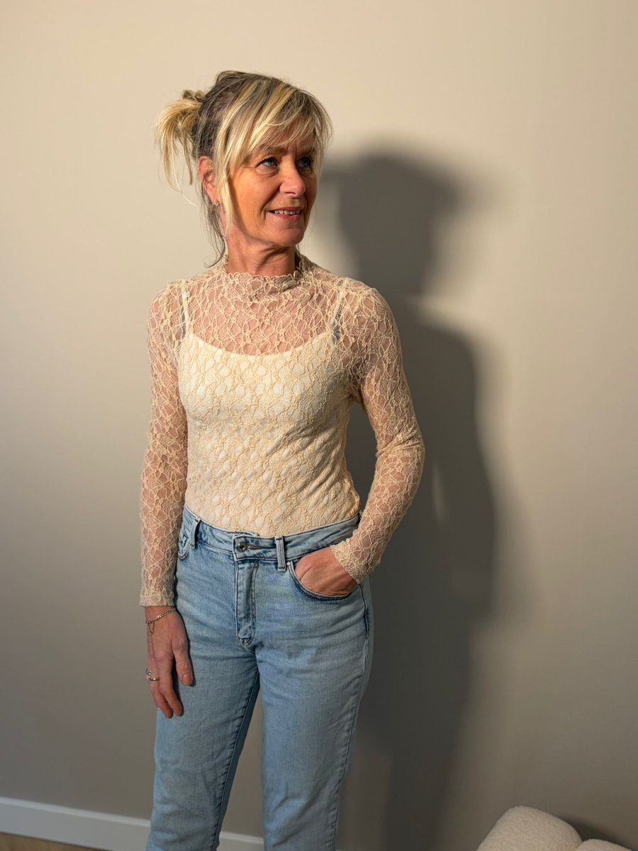 Leuk te dragen onder een korte mouw truitje, een gilet of een blazer. Te dragen van maat S tot L.