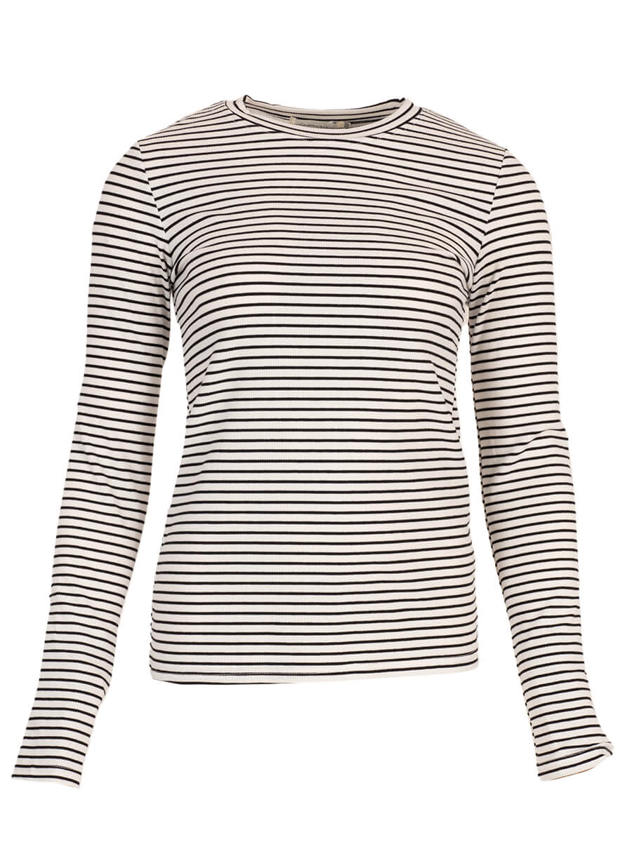 Op zoek naar een leuk shirtje? Zoek dan niet verder! Deze leuke top met strepen heeft niet alleen een leuk motiefje, ook zit hij heerlijk door de fijne stretch! Hij is gemaakt van een fijne ribstof en is super leuk te combineren met een gilet, vest of blazer!